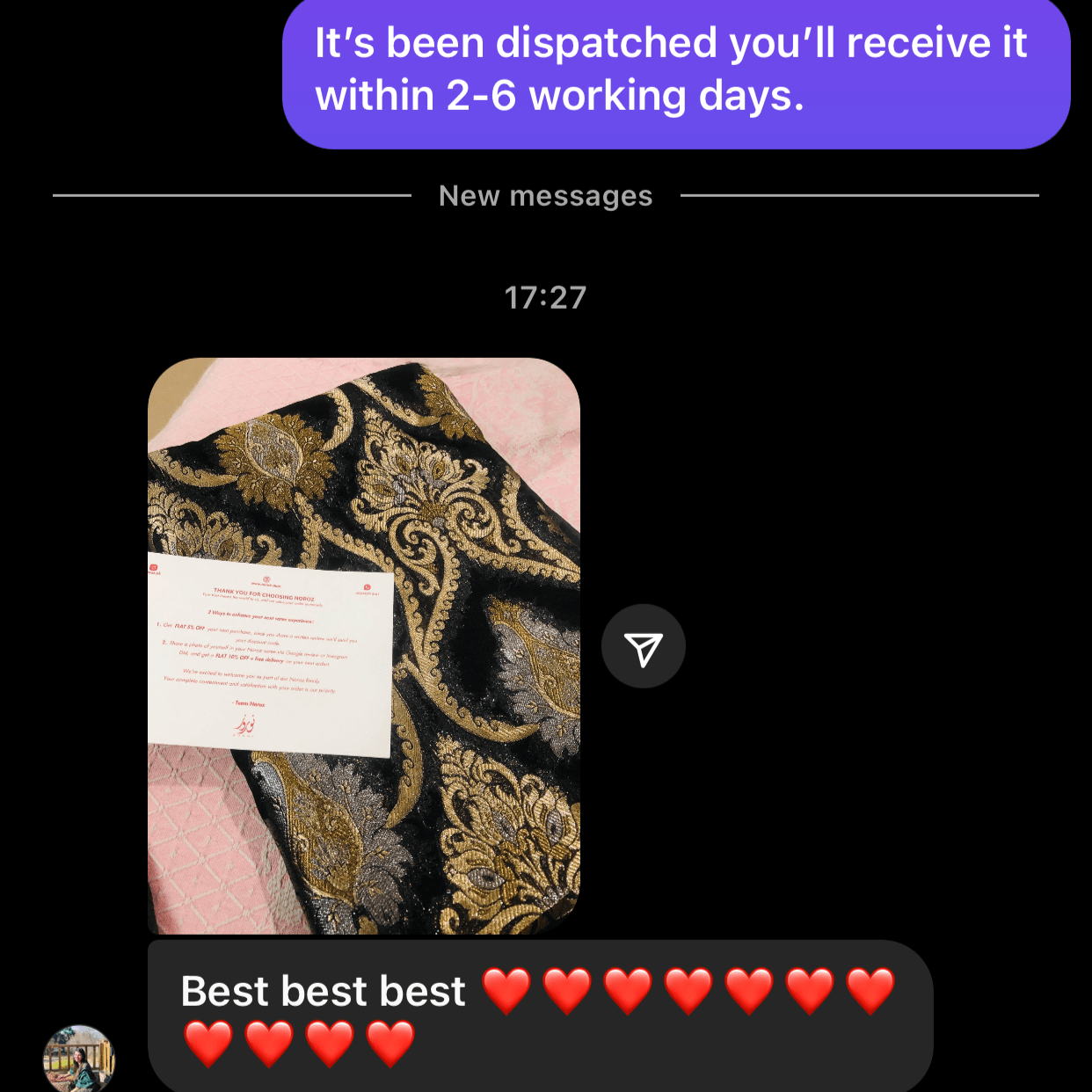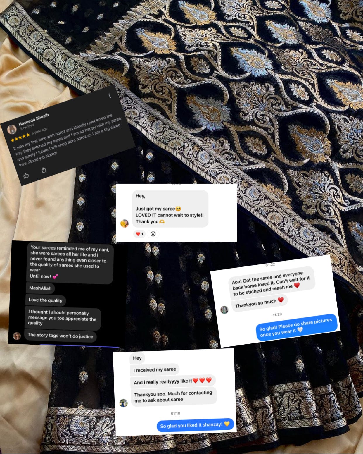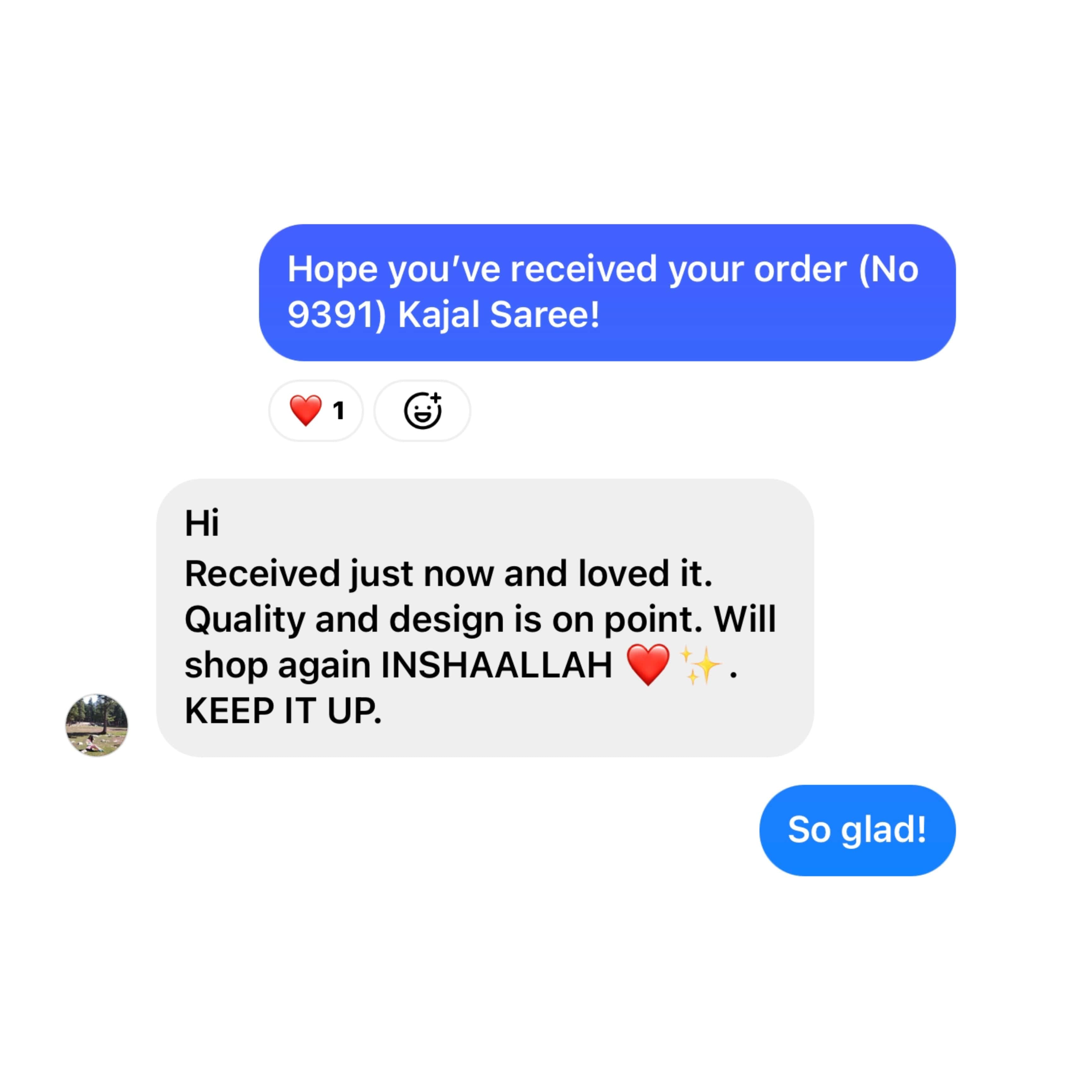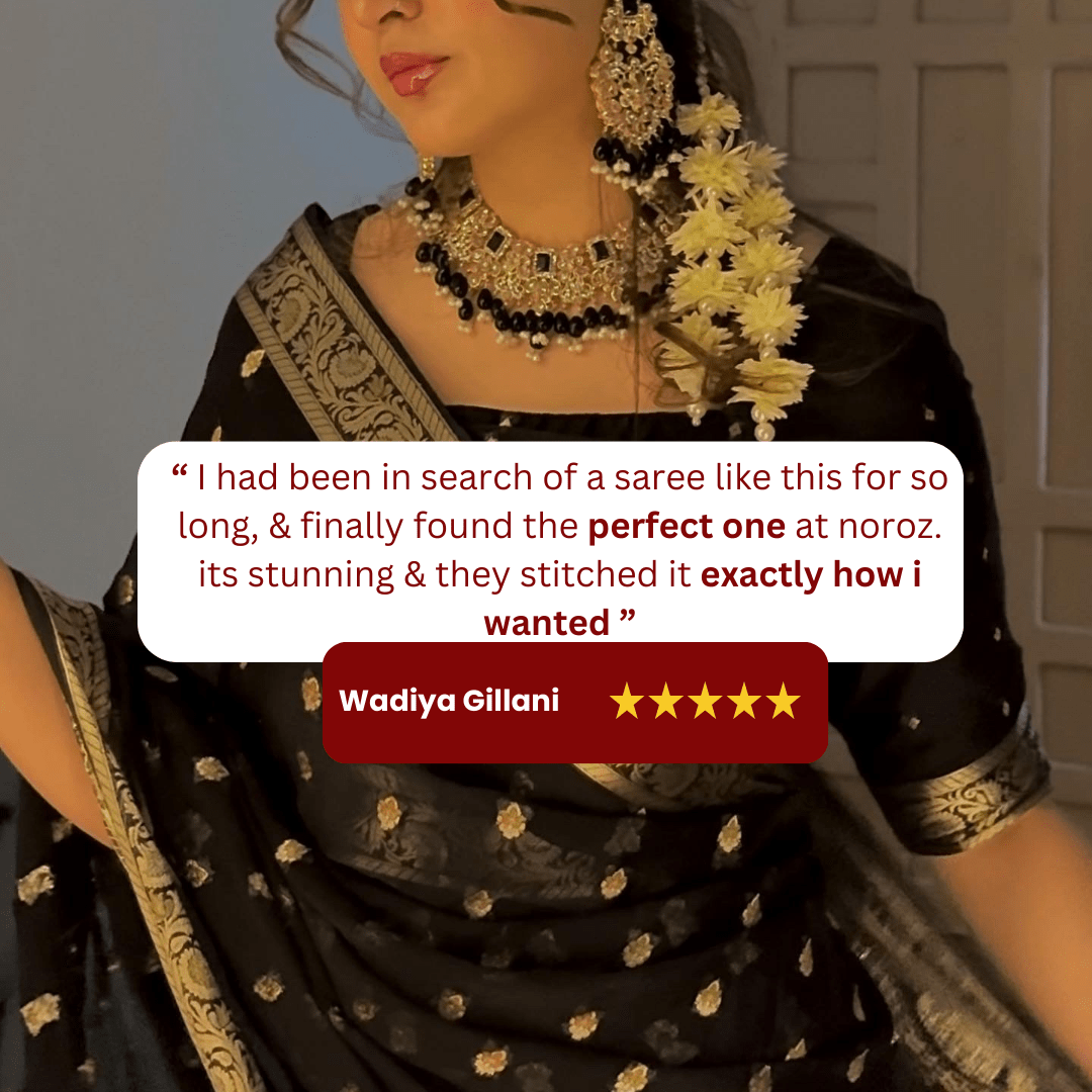 I had an event in 2 days and didn’t have any dresses but thanks to Noroz and it’s amazing customer service I got my saree in just one day I’m so happy with the product itself . Will definitely shop again inshaAllah