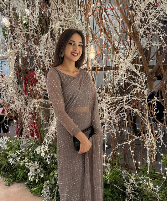 The zip-and-go style ( i guess first time in Pakistan) makes it incredibly easy to wear, perfect for both special occasions and formal gatherings. The flow of the fabric adds a graceful charm, while the shimmer gives it a modern, festive vibe. It’s comfortable, stylish, and definitely a head-turner.