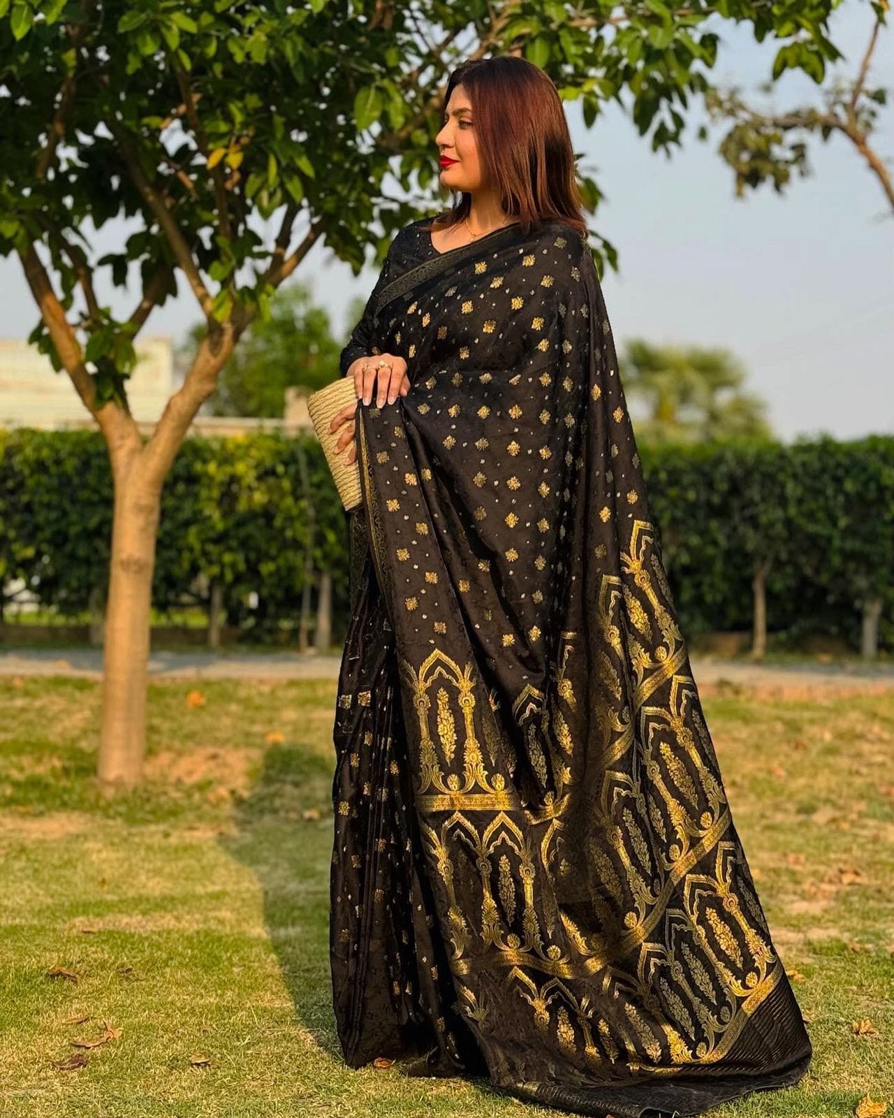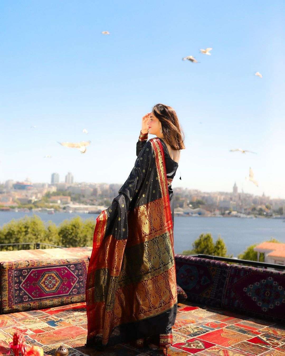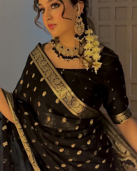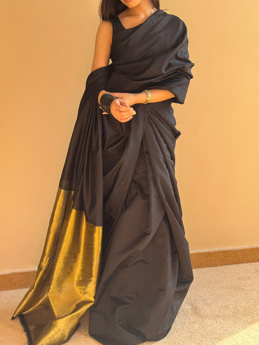 Nothing beats the grace of a black sari, where simplicity speaks power.