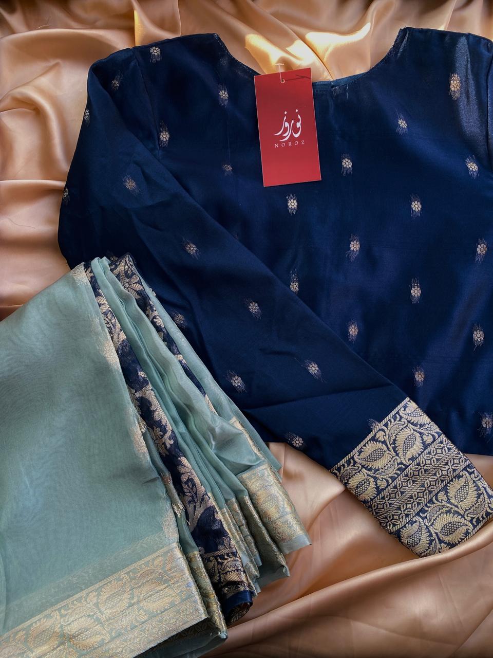 I recently tried the Noroz saree in gorgeous shimmery blue fabric, and I must say it’s an absolute showstopper! The fabric is lightweight yet luxurious, with subtle sparkle and silver sequin stripes that catch the light beautifully. What I love most is how effortlessly elegant it looks — you get the traditional grace of a saree without the hassle of draping.