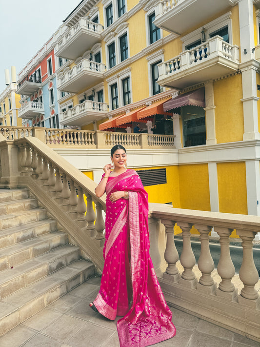 Hot Pink - No minute Saree