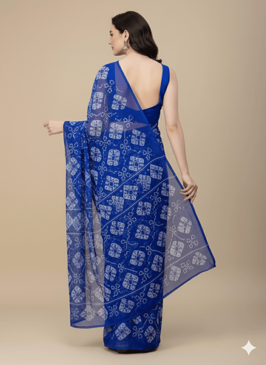 Georgette Chunri Saree - Navy (Stitched)