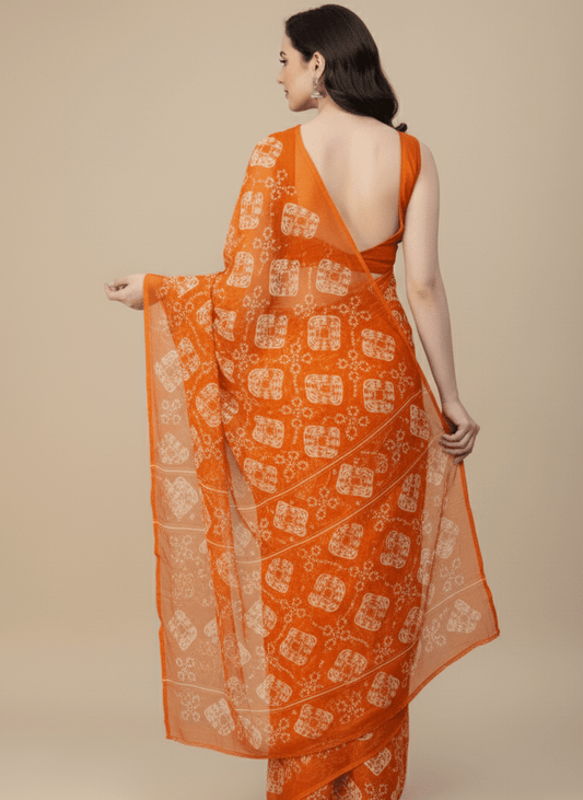 34% OFFGeorgette Chunri Saree - Orange