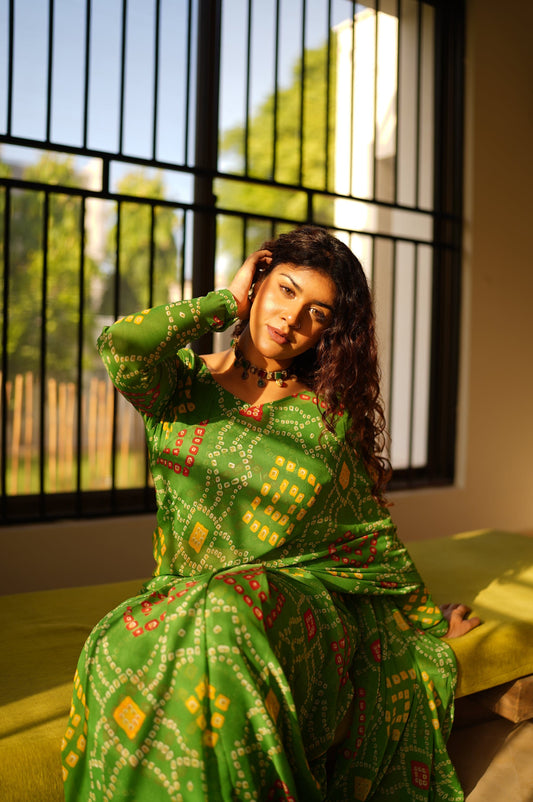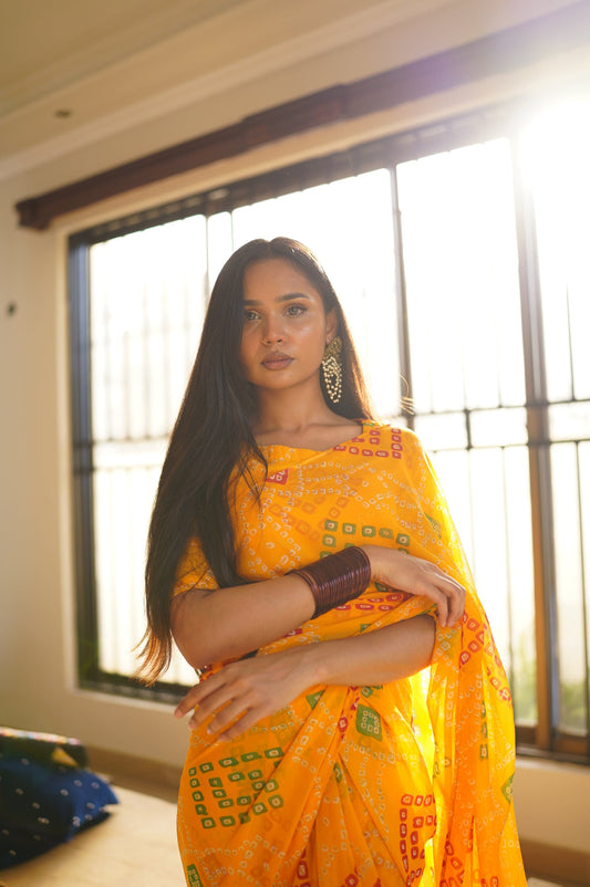 Stitched - Meena Georgette Chunri Saree
