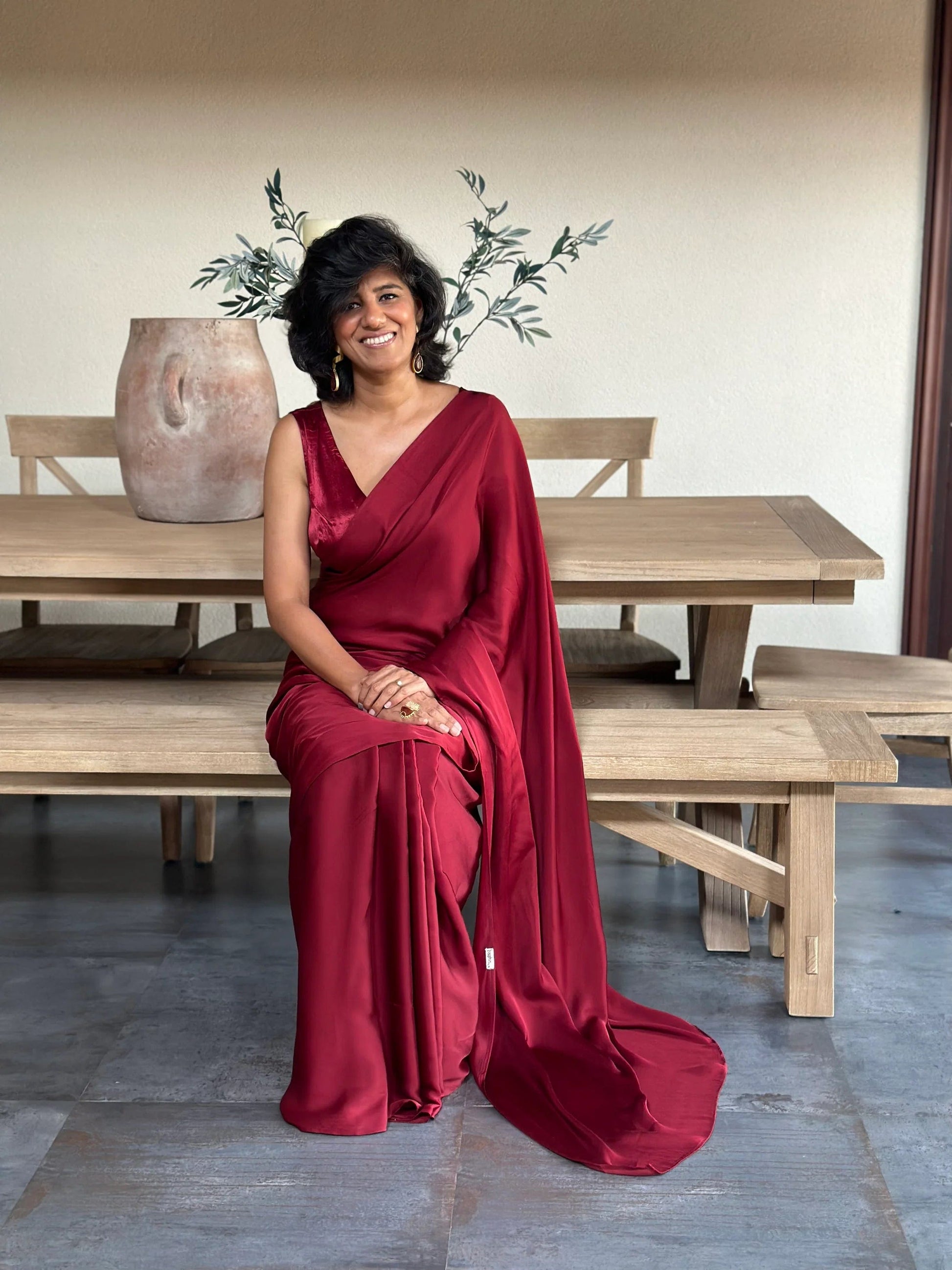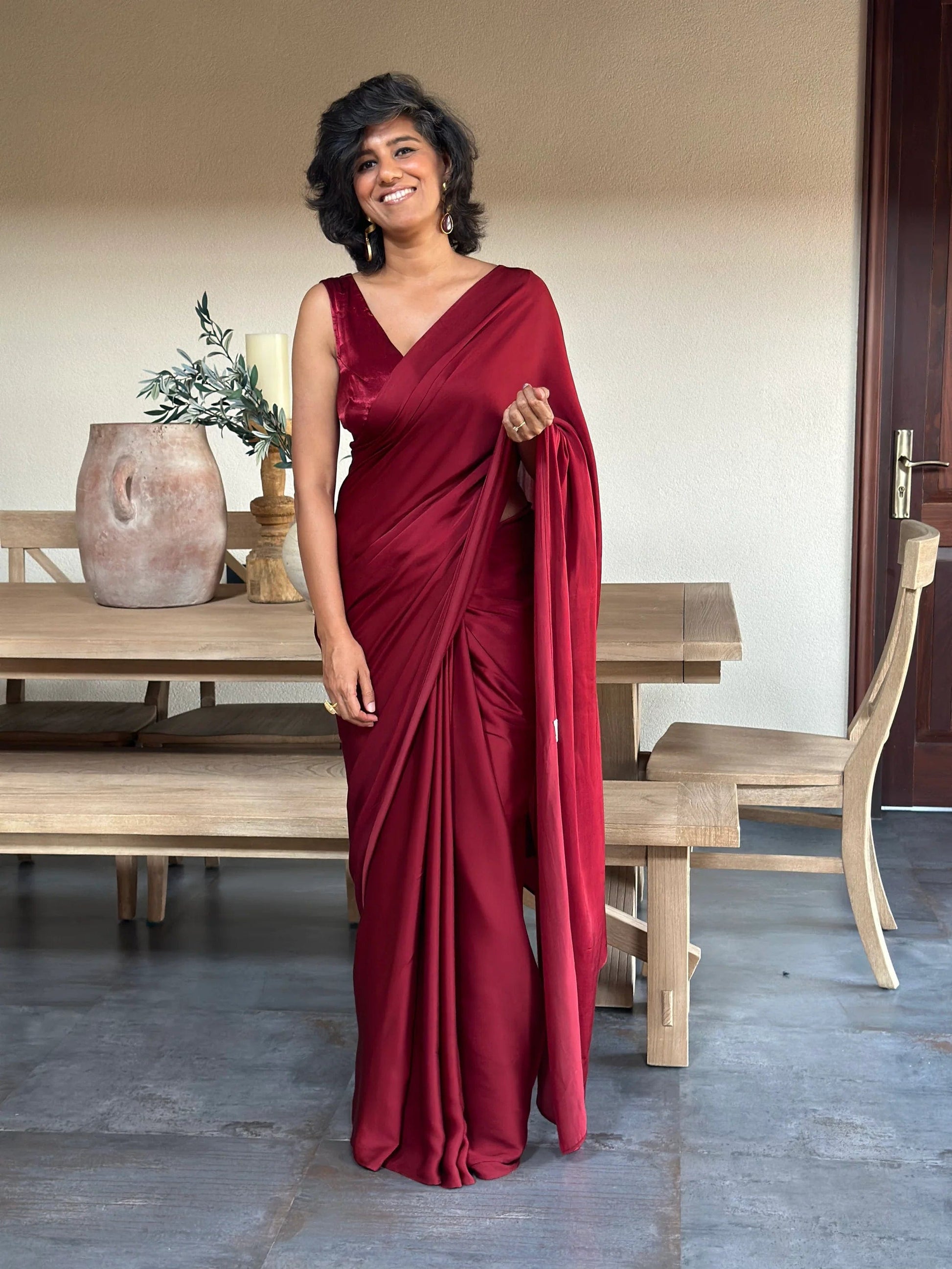 Crafted from luxuriously soft charmeuse silk, this saree drapes effortlessly, offering both comfort and elegance. The stitched option comes with pre-pleated pleats and adjustable waists hooks for the perfect fit. You can request to add fall/edging along with lace to your stitched saree separately after placing your order (Extra Charges will apply).